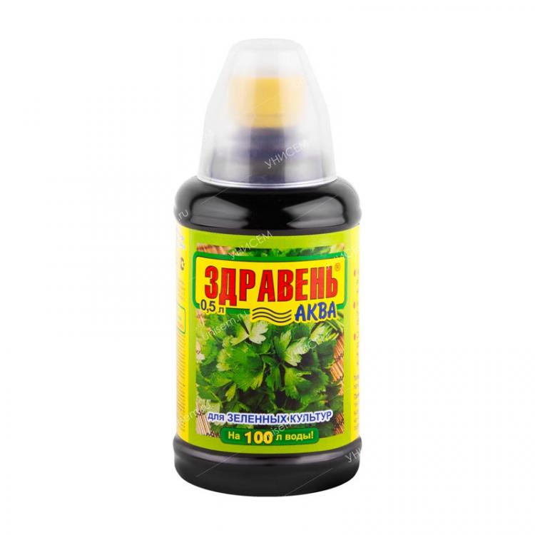 «ЗДРАВЕНЬ-АКВА ЗЕЛЁНЫЕ КУЛЬТУРЫ» — жидкое комплексное органоминеральное удобрение для корневой и некорневой подкормки капусты и зеленных культур в личных подсобных хозяйствах.
